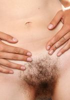 Super hairy coed rubs her body hair and muff