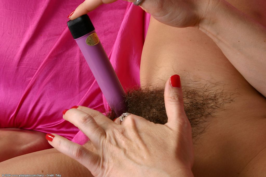 Hairy babe Mecca gets her vibrator and masturbates