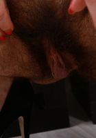 - Description: This hairy lady has a muff to tend to. She lays all over the desk to get the proper angles for her pussy. She fingers herself away in this great hairy video!